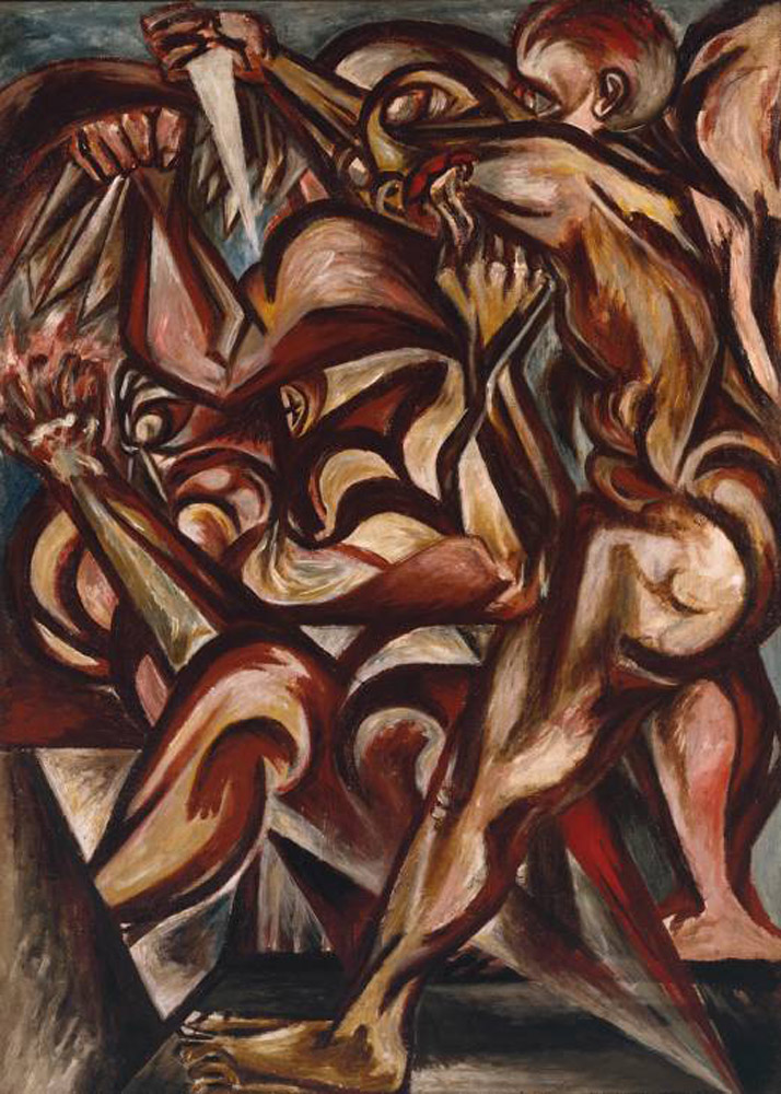 El resultado es un lienzo de grandes dimensiones, realizado con gran rapidez, cortados a su gusto para dar por finalizada su composici�n donde su obra final, nos ofrece la visi�n de un conjunto de cuadros pintados dentro de un mismo lienzo en el que los temas se entrelazan de forma vigorosa