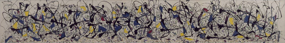 Pollock, ser� uno de los m�ximos representantes de la pintura de acci�n o action-painting, elabor� en sus pinturas la t�cnica del dripping (chorreo de la pintura sobre el lienzo, directamente del tubo), en las que la velocidad de ejecuci�n y el propio hecho f�sico del movimiento del propio artista creaban un resultado final casual, indeterminado� una expresi�n �ntima del ejecutor, donde plantea la negaci�n de profundidad y el desarrollo de una experiencia que puede convertirse en el resultado de una suma de comportamientos.