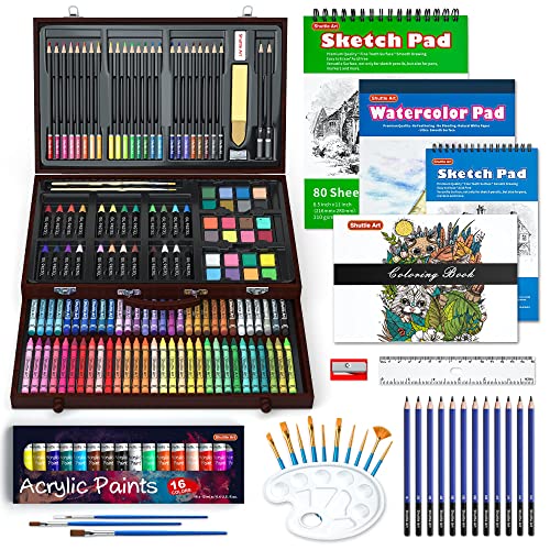 ShuttleArt- 186pcs Maletín Pinturas Profesional de Arte de Lujo, con Lapices Colores, Acrílico, Pinturas Pastel Óleos y Acuarela, Cuaderno de Dibujo de Acuarela. Maletin Pinturas para Niños y Adultos