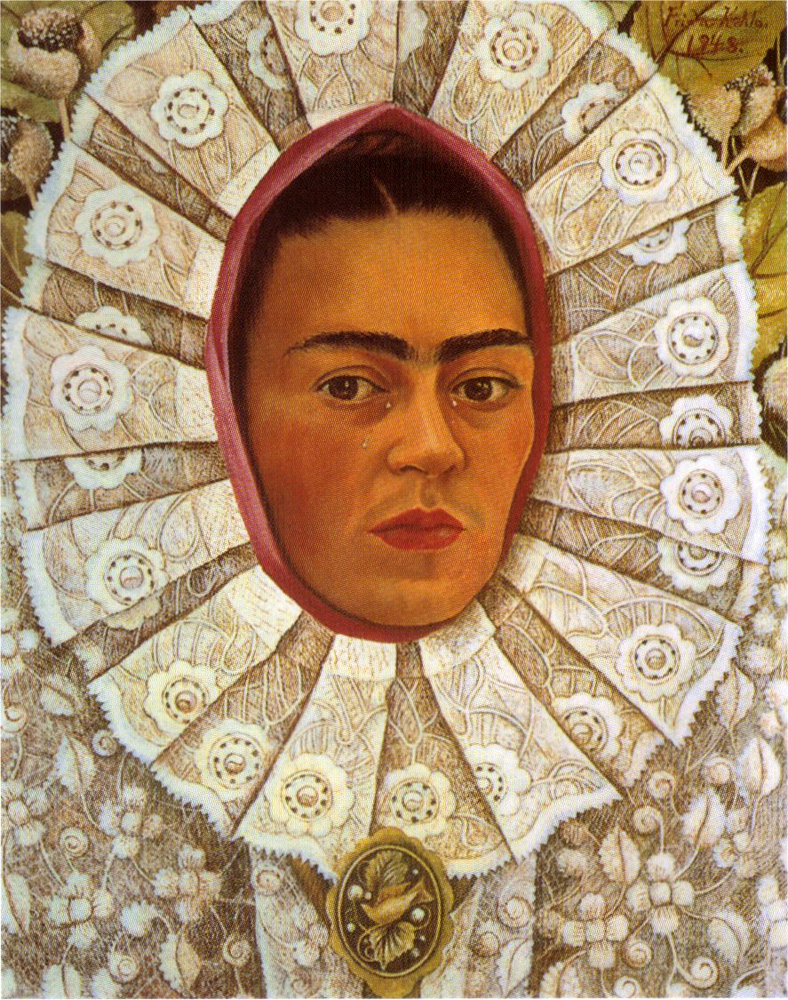 El autorretrato "Las dos Fridas" muestra una Frida compuesta por dos personalidades, fue terminado poco despu�s del divorcio. En este cuadro reflej� la separaci�n y la crisis matrimonial. La parte de su persona admirada y amada por Rivera, la Frida mexicana con traje de Tehuana, sostiene en la mano un amuleto con el retrato de su marido cuando era ni�o. A su lado est� sentada su otro ego, una Frida cuyo vestido de encaje le hace parecer europea. Los corazones desnudos de ambas est�n unidos mediante una arteria. Con la p�rdida de su amado, la Frida europea perdi� tambi�n una parte de s� misma. Del corte en la arteria brota sangre, que a duras penas es contenida por una pinza de cirujano. La Frida desairada amenaza con desangrarse.