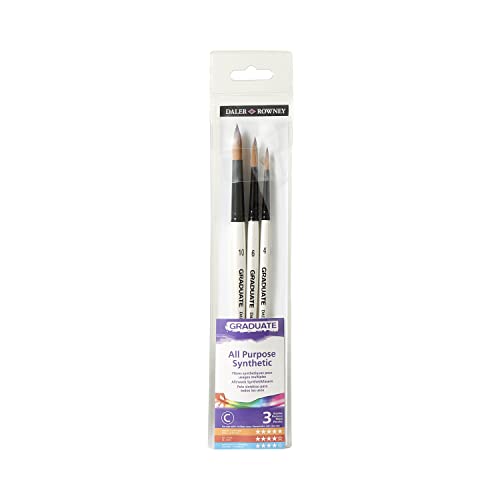 Una selección de 3 pinceles Graduate de pelo sintético, de mango corto, adecuados para todas las técnicas artísticas. Los pinceles redondos son herramientas versátiles para crear y pintar desde flora y bodegones a retratos y paisajes. La gama Graduate ofrece pinceles multitécnica para todas las técnicas de bellas artes. Los filamentos sintéticos de la gama de mango corto ofrecen una adecuada retención de la forma y son adecuados para pintar con acrílicos, pero también son adecuadas para acuarelas y óleos. Combinado con la férula negra brillante y un mango ergonómico de color blanco perla, este pincel brinda rendimiento, estilo y asequibilidad. Un set multitécnica adecuado para estudiantes y pintores aficionados por igual, que ofrece una adecuada relación calidad-precio.
