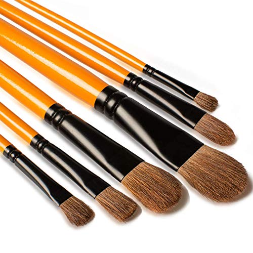 Juego de 6 pinceles de pintura para artista, lengua de gato hecha de pelo de marta roja premium para acrílico