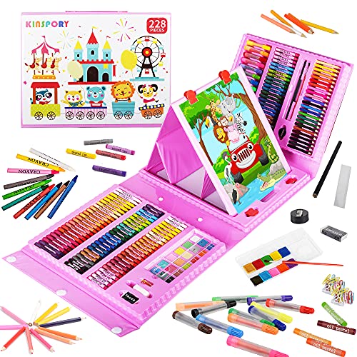 ★【Fantástico regalo para niñas, niños, adolescentes, niños 5 6 7 8 9 10 11 12】Este juego de arte para colorear es muy recomendable para niños mayores de 4 años que deseen aprender obras de arte creativas. En el interior encontrará una gran variedad de crayones, Lápiz de acuarela y lápices de colores: 208 piezas en total. Puede esconderlo en un cajón para vacaciones, cumpleaños, regalo de Navidad cuando los niños lo visiten, será un kit de útiles escolares sorprendente, también agradable y excelente. ★ 【Adecuado para madres de dos niños】 Este conjunto de arte está lleno de elementos para colorear, pintar y dibujar. Todos los materiales de arte están cuidadosamente organizados en un elegante estuche de arte, conveniente para que los niños practiquen dibujando imágenes e ilustraciones, el juego de colorear incluso incluye un caballete emergente de doble cara que permite que dos artistas trabajen al mismo tiempo. un regalo fantástico, especialmente para madres de dos niños. ★【Estuche de suministros de arte elegante y hermoso】Este juego de manualidades empaquetado en una caja de arte hermosa y resistente hace que sea mucho más fácil mantener los suministros organizados; su impresionante caballete emergente de doble cara y muchos colores excelentes lo convierten en un excelente regalo para niños de 5 a 12 años, y es ideal para llevarlo durante las vacaciones. El estuche ordenado hace que el conjunto de arte sea perfecto para viajar. ★ 【Seguro que será un gran regalo】 Fabricado con materiales ecológicos, no tóxicos, cumple con la norma ASTM 963. Todos los materiales de arte vienen en una elegante caja con forma de concha. Los brazos del estuche del kit de arte se extienden para mostrar más piezas de artículos. Un regalo para artistas en ciernes, niños, niñas, adolescentes, niños, nietos y sobrinos de 5 a 12 años para cumpleaños, vacaciones, escuela, regalo de Navidad, especialmente para niños que aman el arte.