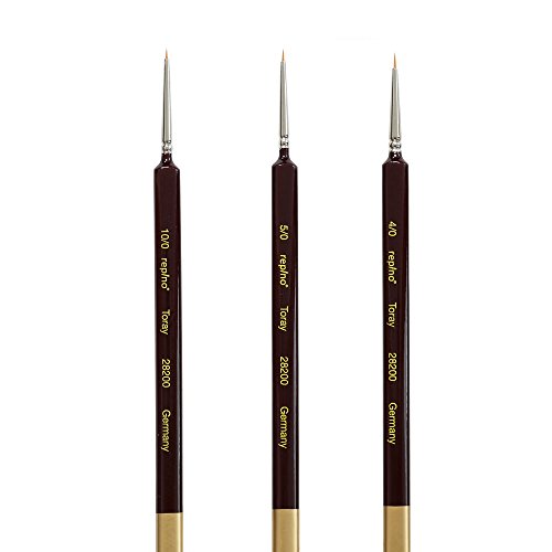 Pincel Repino Toray de pelo sintético con mango triangular profesional para artistas, con virola de níquel sin costuras y mango triangular ergonómico corto. El pelo sintético Toray fino es de punta fina, elástica y tiene una buena absorción de color. El mango triangular se adapta bien a la mano y evita que se deslice. Ideal para trabajos de modelado, diseño de uñas, acuarela y pintura acrílica. Juego de 3 pinceles de tamaño 10/0, 5/0, 4/0. Incluye protección para el pelo.