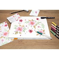 Un estuche completo con todos los artículos necesarios para iniciar en el arte del hand lettering | Incluye manual de instrucciones básicas, consejos y trucos para crear dibujos con temática floral