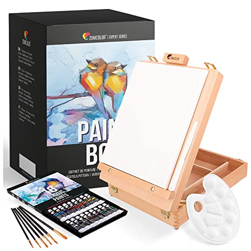 MALETIN PINTURAS CON CABALLETE DE CALIDAD ZENACOLOR - Usa los acrilicos para pintar, ricos en pigmentos, y mézclalos sobre la paleta acuarela para obtener una infinidad de colores distintos.